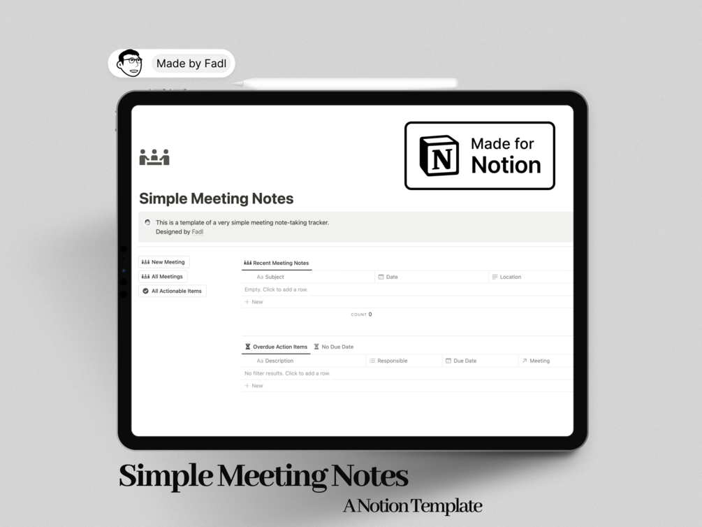 This Template is focused on being organized while not forgetting about actionable items that went overdue.