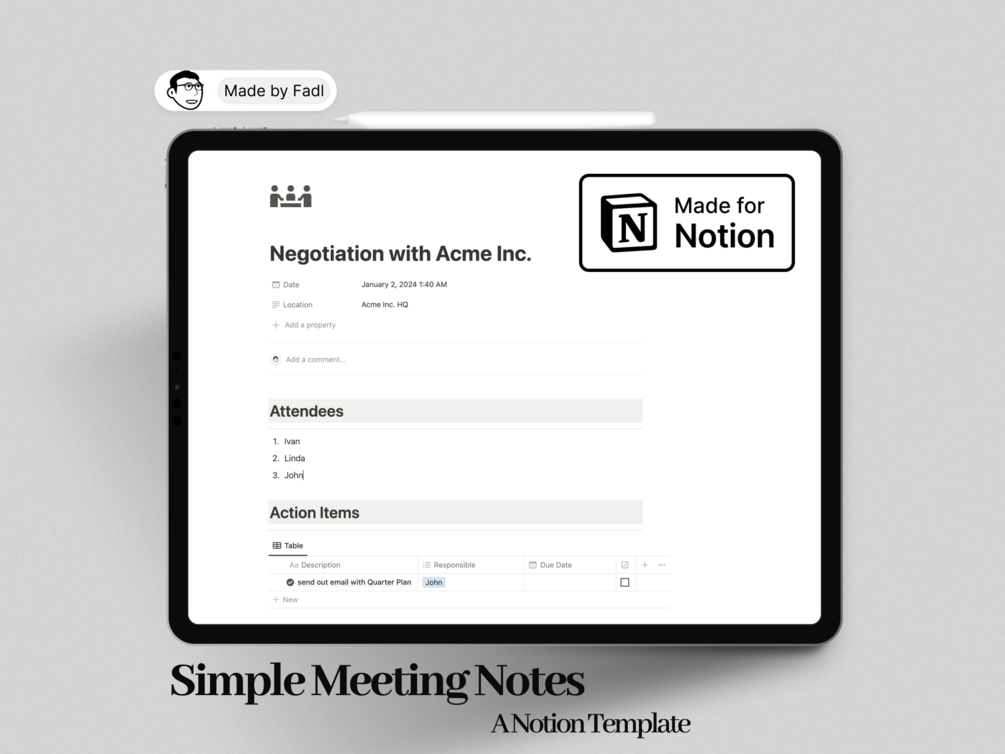 Simple Meeting Note Taking Template For Notion